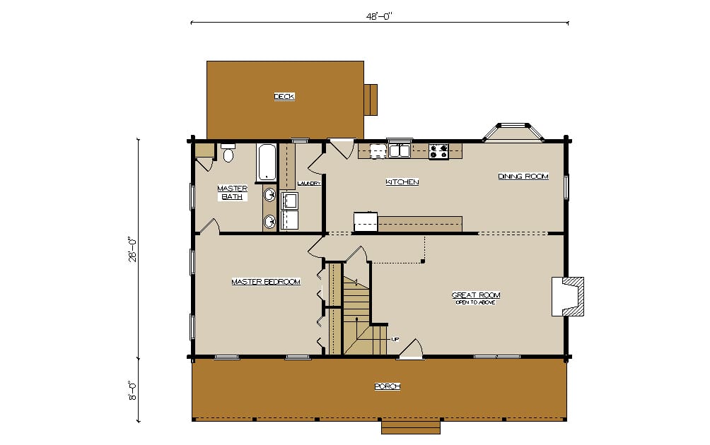 If you want a log home that uses its square footage efficiently across two levels while keeping everyday living grounded on the main floor, the Athens offers a practical and well-structured design.