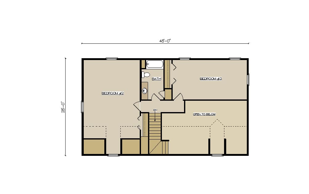 With three bedrooms and two bathrooms spread across two levels, the Athens works well as a full-time residence, vacation home, or rental property where privacy and defined living zones matter. The plan balances openness on the main floor with quieter spaces above, making it comfortable for both daily living and longer stays.