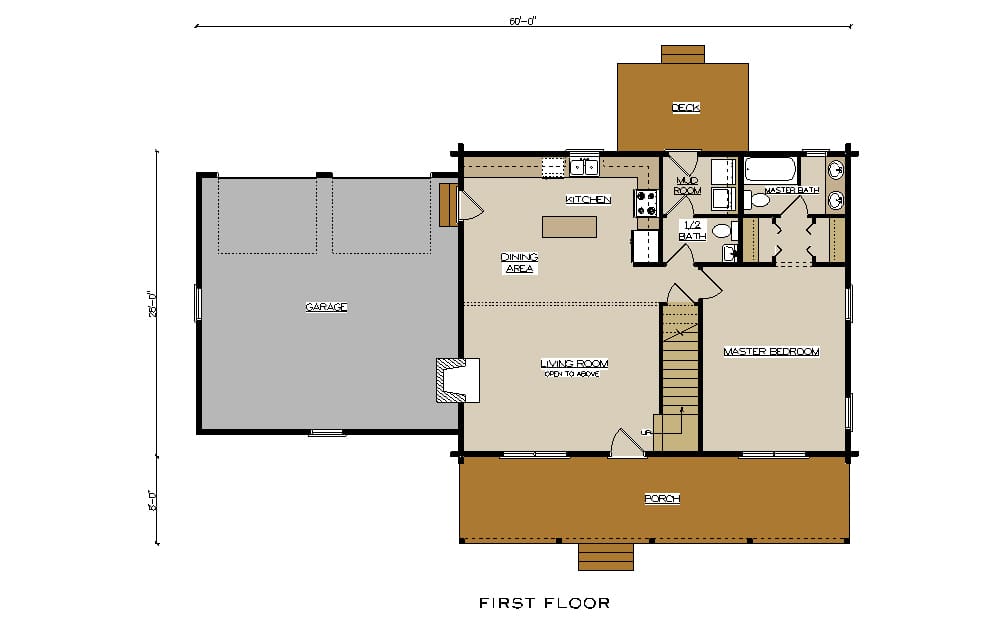 The Decatur is a one-story log home designed around simple, efficient living with all primary spaces on a single level. The layout emphasizes ease of movement and everyday comfort, making it a strong option for full-time living, a retirement home, or a low-maintenance retreat.