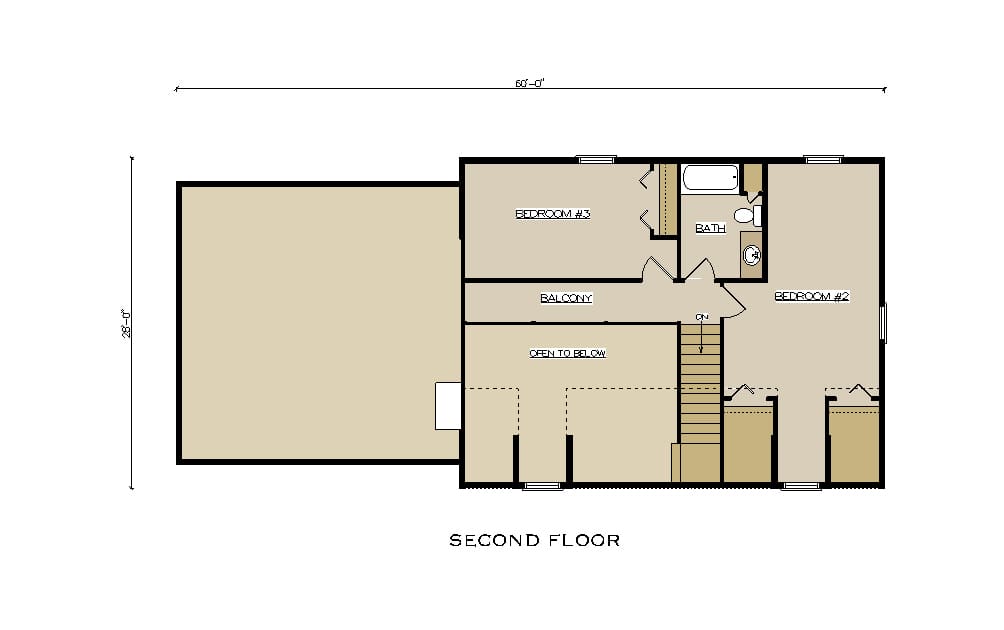 Bedrooms are positioned away from the main living space to provide privacy while still remaining convenient. The plan avoids unnecessary hallways, allowing more of the square footage to be used for livable rooms rather than circulation. Window placement throughout the design helps bring in natural light and reinforces the connection between indoor spaces and the surrounding landscape.