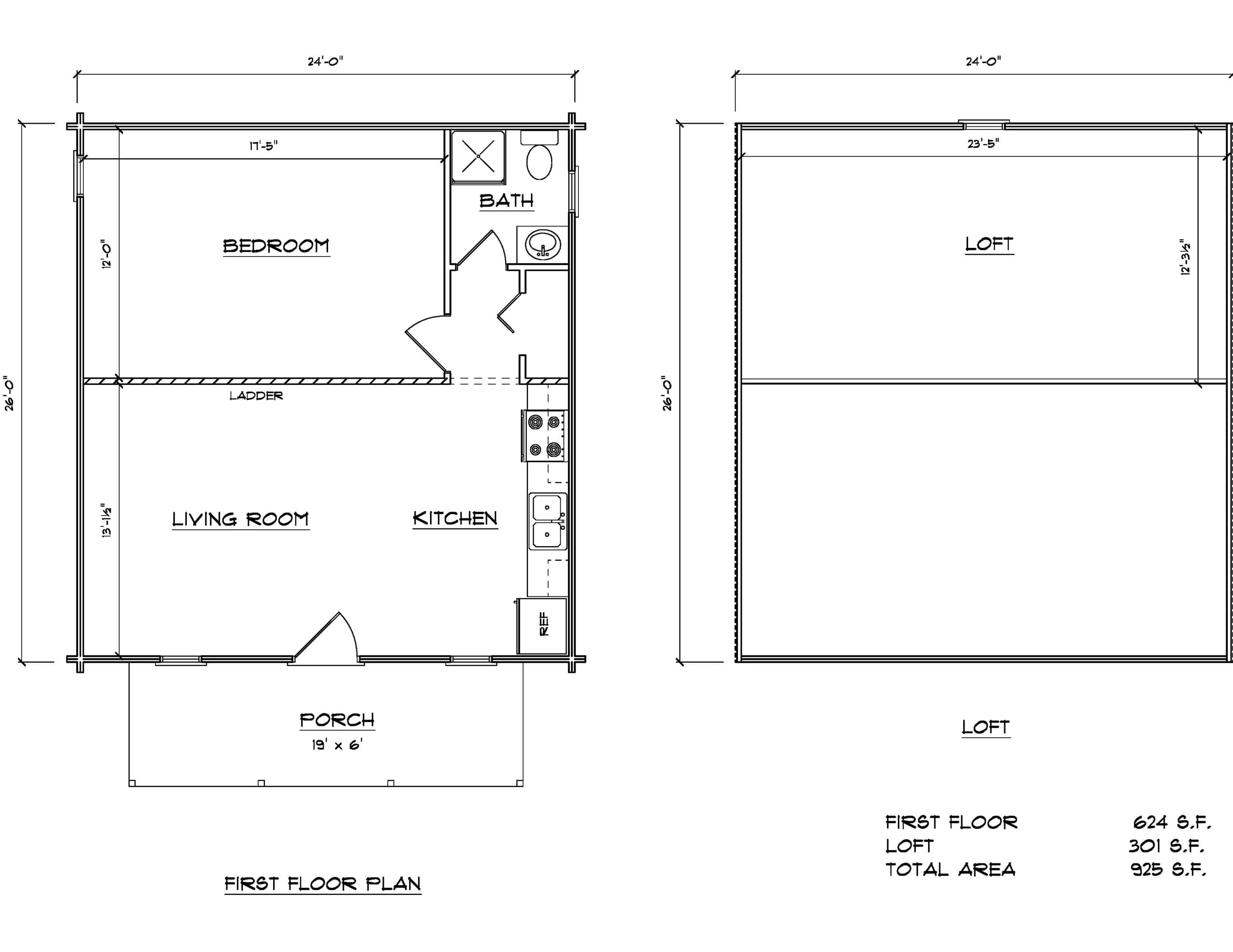 The Hilltop D is the most spacious option in the Hilltop series. The main floor offers a generous living area, kitchen, bedroom, and bathroom, while the loft adds substantial additional space above. The layout supports multiple occupants without feeling cramped and allows for clear separation of living and sleeping zones. As an EZ Build cabin, the Hilltop D is ideal for families, extended stays, or owners who want a compact but comfortable log cabin that can serve many purposes over time.