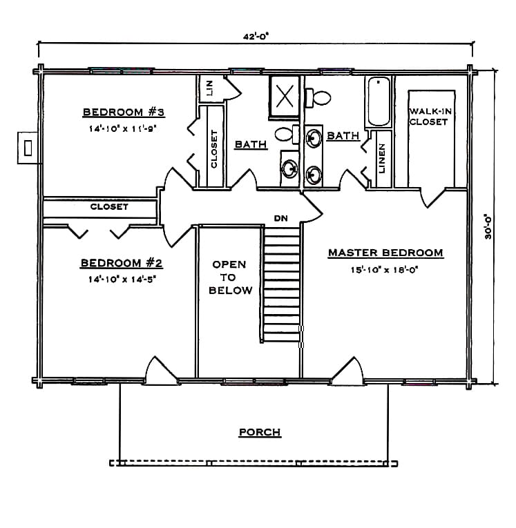 The design offers a natural flow between gathering areas and private rooms, making it well suited for families or homeowners who want extra space. The Plantation delivers classic log home character while maintaining practical room sizes and everyday functionality.